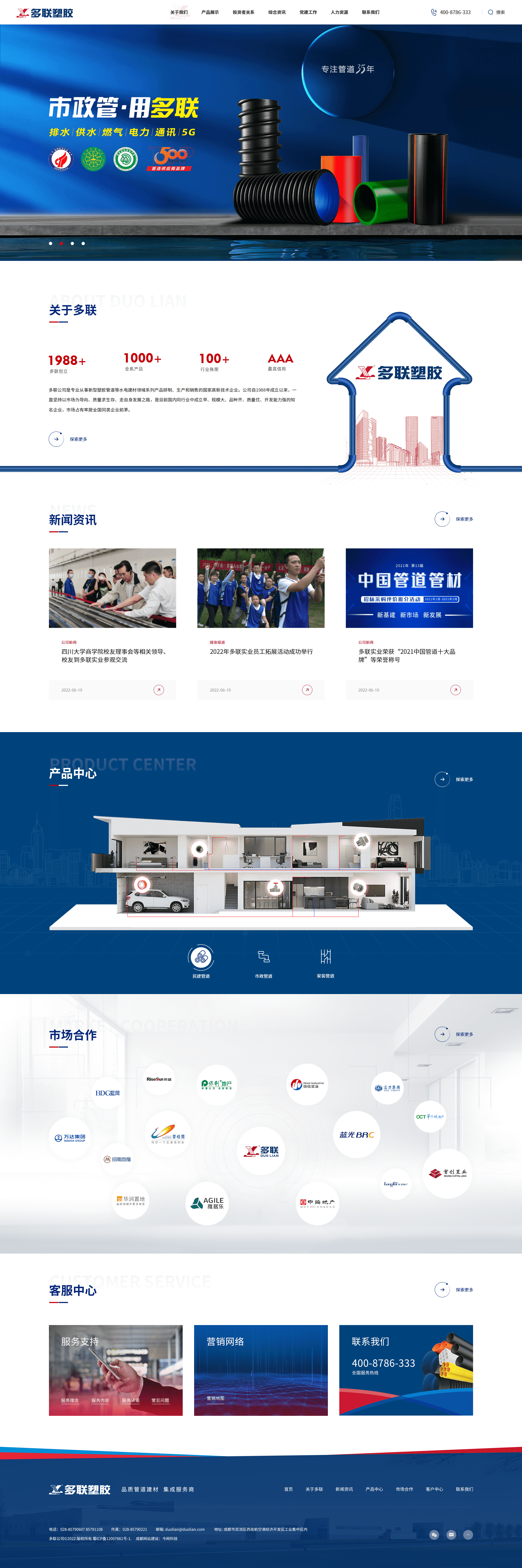 四川多聯實業有限公司是專業從事新型塑膠管道等水電建材領域系列產品研制、生產和銷售的國家高新技術企業。公司自成立以來,一直堅持以市場為導向、質量求生存、走自身發展之路,是目前國內同行業中成立早、規模大、品種齊、質量優、開發能力強的知名企業,市場占有率居全國同類企業前茅。