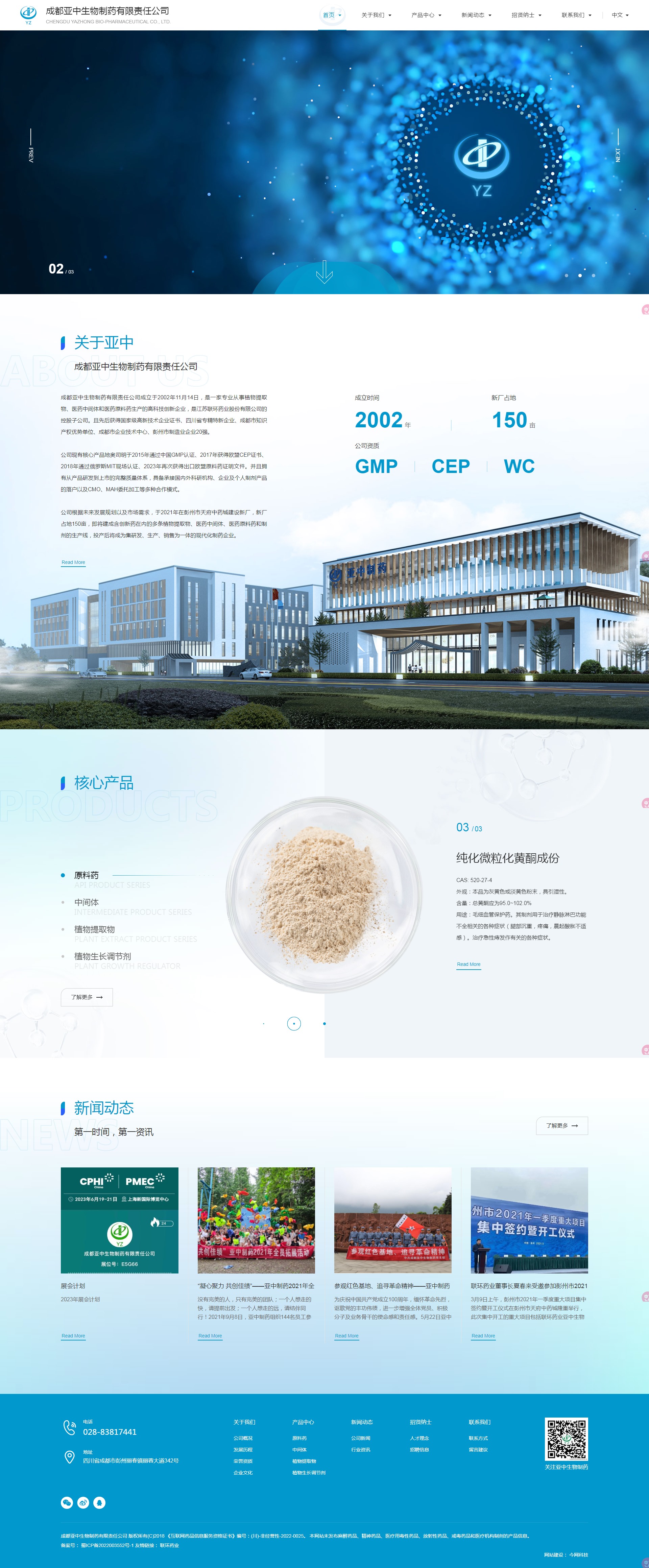 成都亞中生物制藥有限責任公司成立于2002年11月14日,是一家專業從事植物提取物、醫藥中間體和醫藥原料藥生產的高科技創新企業,是江蘇聯環藥業股份有限公司的控股子公司。且先后獲得國家級高新技術企業證書、四川省專精特新企業、成都市知識產權優勢單位、成都市企業技術中心、彭州市制造業企業20強。